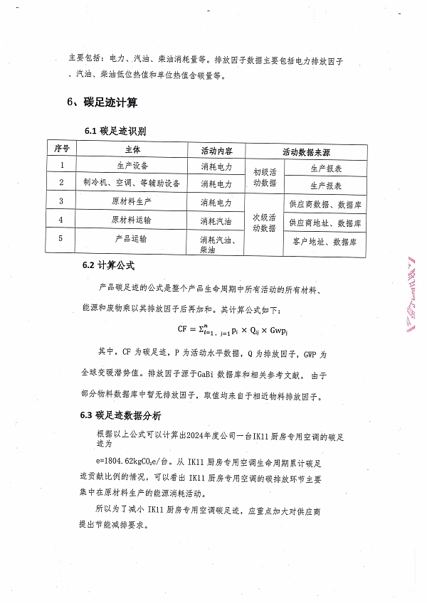 2024年度iK11廚房專用空調產品碳足跡報告